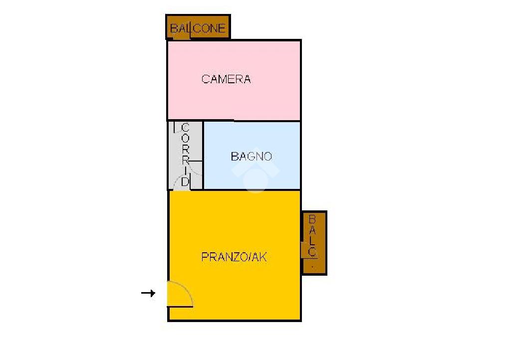 L’immobile si compone da una prima zona giorno con angolo cottura ed accesso diretto al balcone, una camera matrimoniale con un ulteriore balcone e un bagno con doccia.