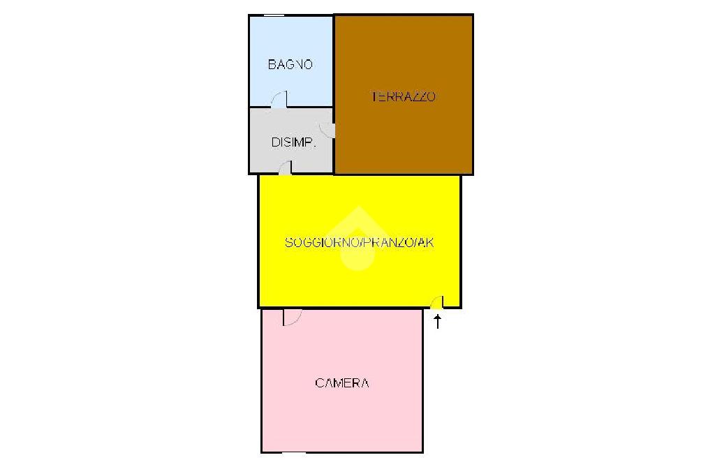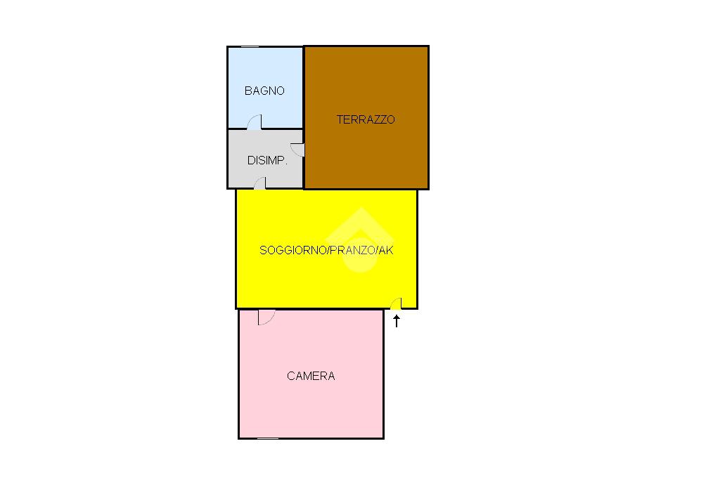 L'appartamento si apre su un luminoso soggiorno con angolo cottura, ambiente accogliente e funzionale dove vivere la quotidianità, una spaziosa camera matrimoniale e un disimpegno che conduce a un bagno con doccia e finestra.