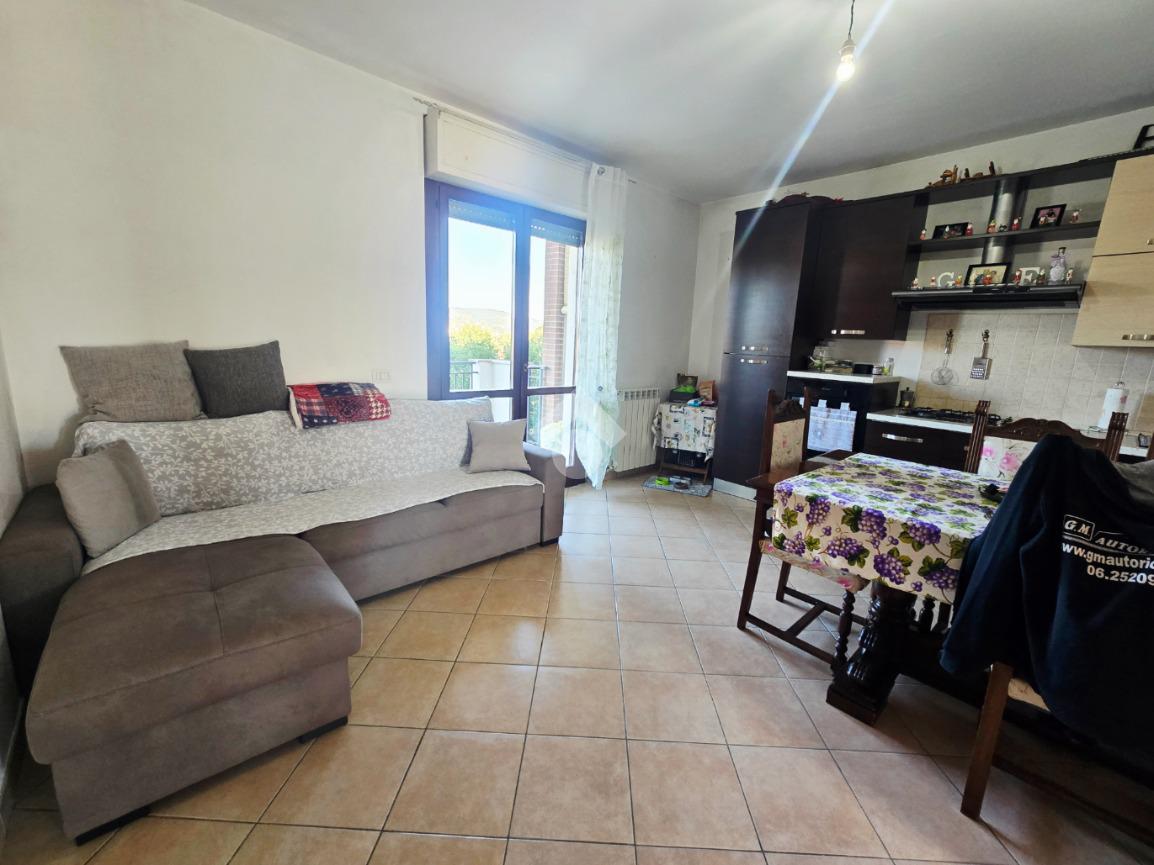 L'immobile presenta una funzionale zona living con cucina a vista e accesso ad un primo terrazzo vivibile, ideale per trascorrere momenti di relax o condivisione.