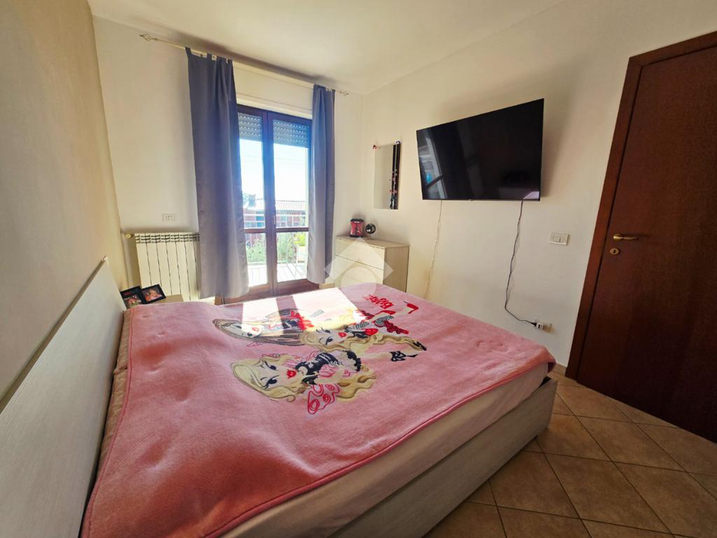 Un disimpegno conduce sia ad un bagno dotato di vasca e finestra, sia ad una spaziosa camera matrimoniale con un ulteriore terrazzo abitabile.