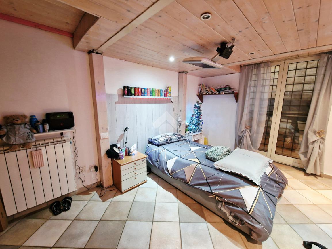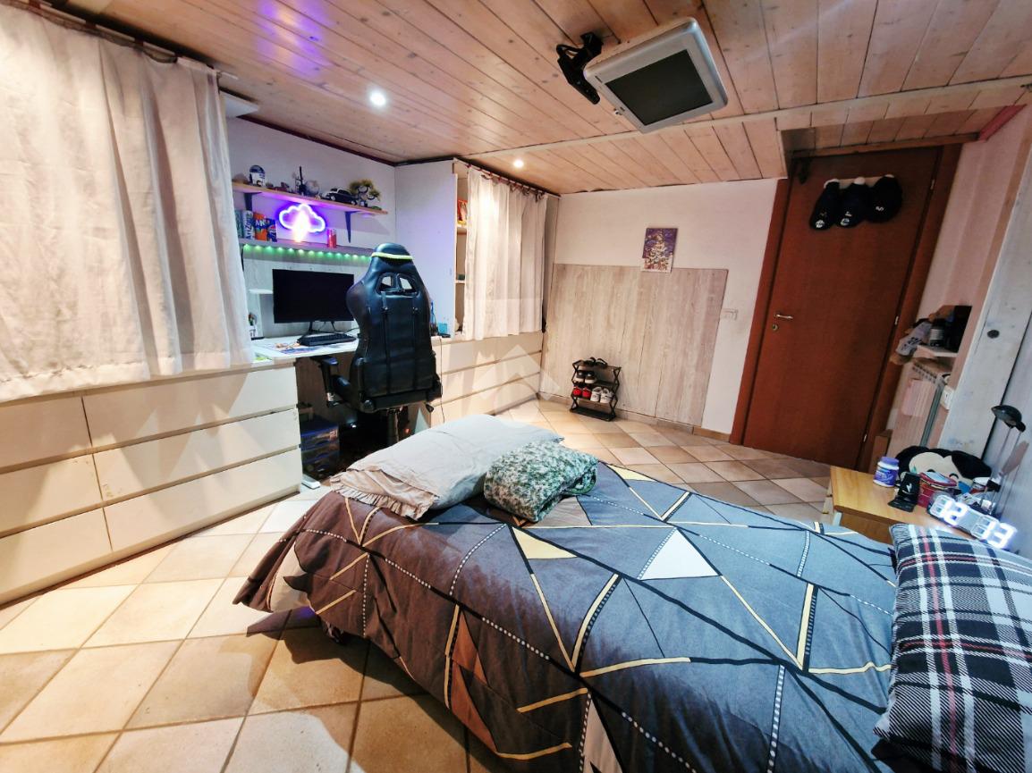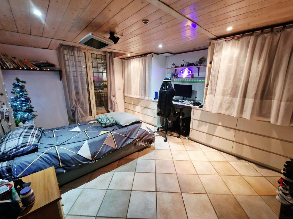 Un pratico soppalco ospita una seconda camera con cabina armadio e un’area a vista sul soggiorno, ideale come studio, zona lettura o spazio multifunzionale.