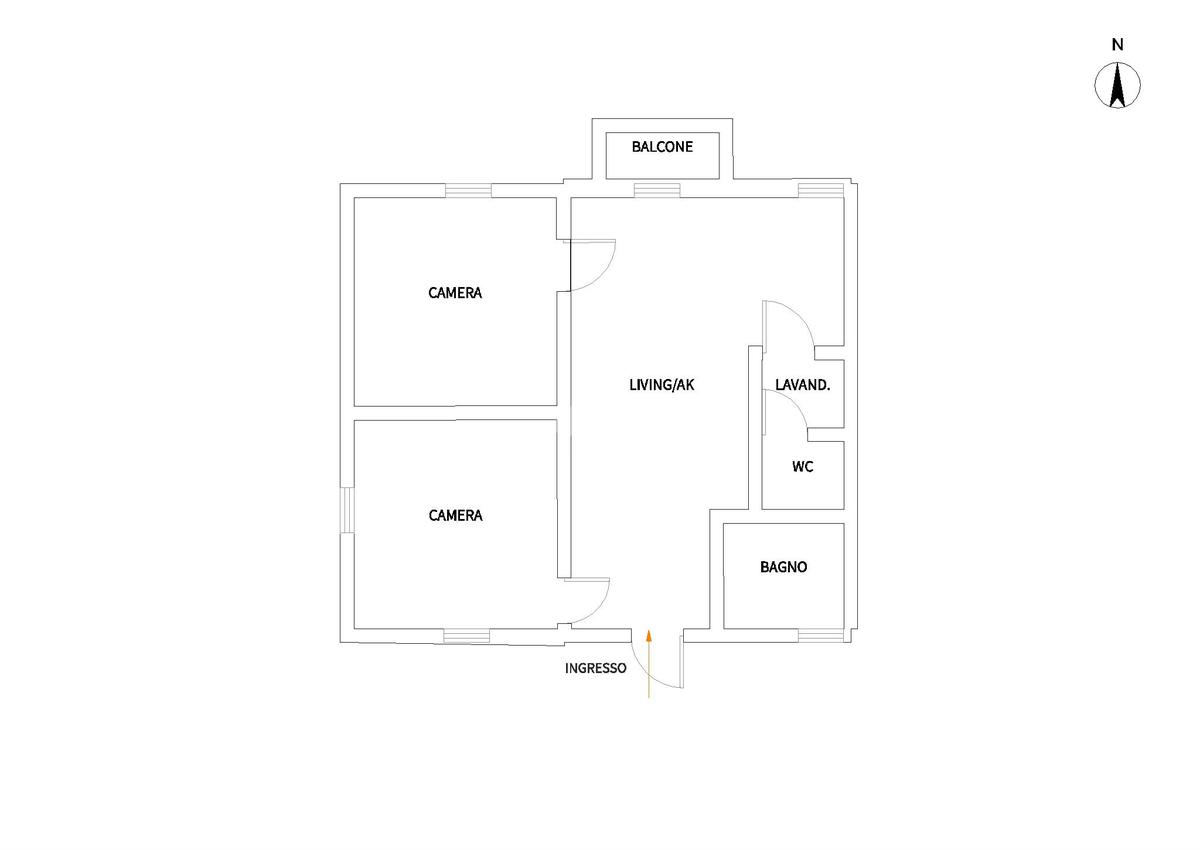 La casa si compone da un’ampia e luminosa zona living con balcone, cucinotto separato con cucina angolare, due camere da letto matrimoniali, un bagno padronale con doccia e finestra, antibagno adibito a lavanderia e un bagno di servizio.