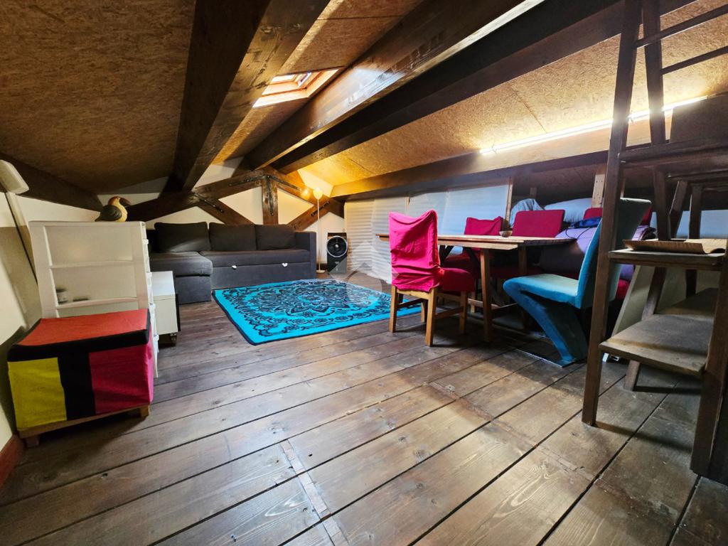 Una moderna scala in legno conduce al piano superiore dove è presente un locale soffitta dotato di lucernario, ideale anche come studio o camera per gli ospiti.