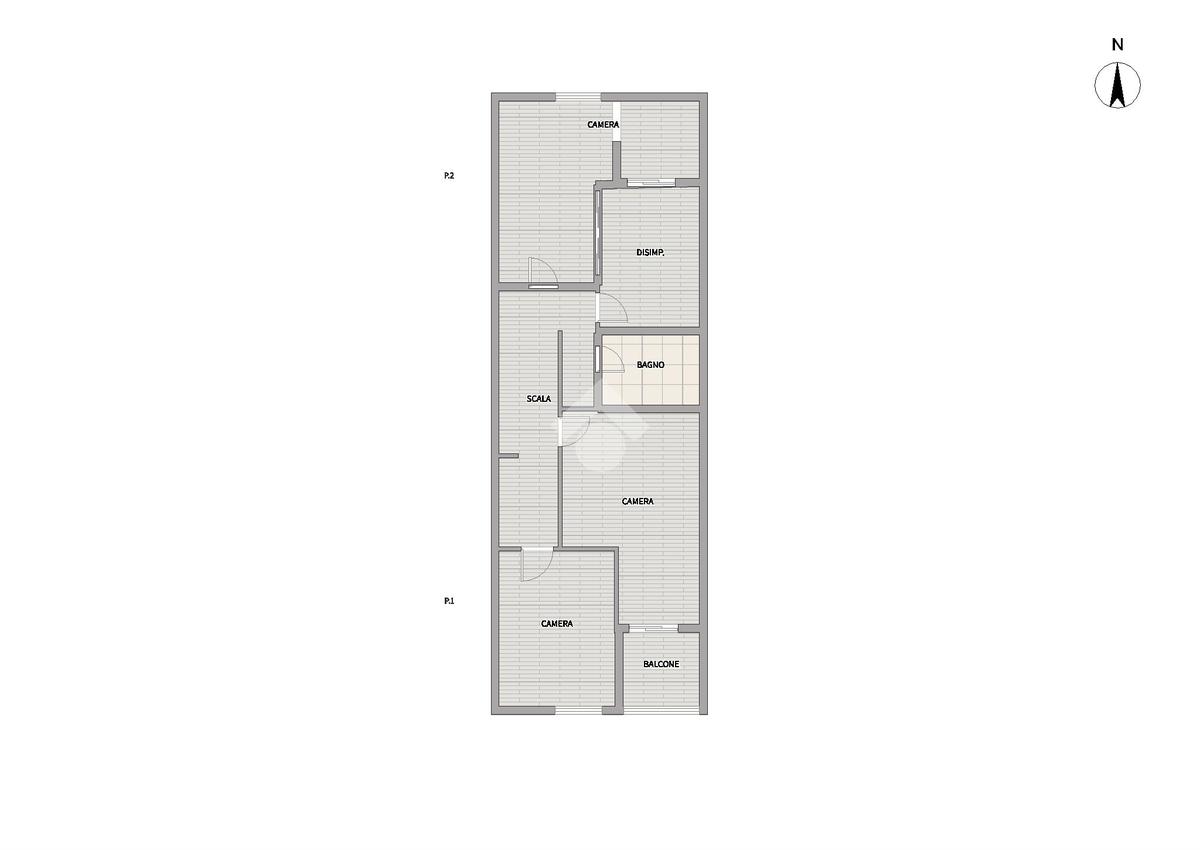L’abitazione offre una soluzione ideale per famiglie o per chi desidera spazi confortevoli e funzionali. Al piano terra troviamo un accogliente soggiorno con cucina a vista e un bagno di servizio, con accesso al cortile esterno, perfetto per trascorrere momenti di relax all’aperto o per pranzi e cene in compagnia.