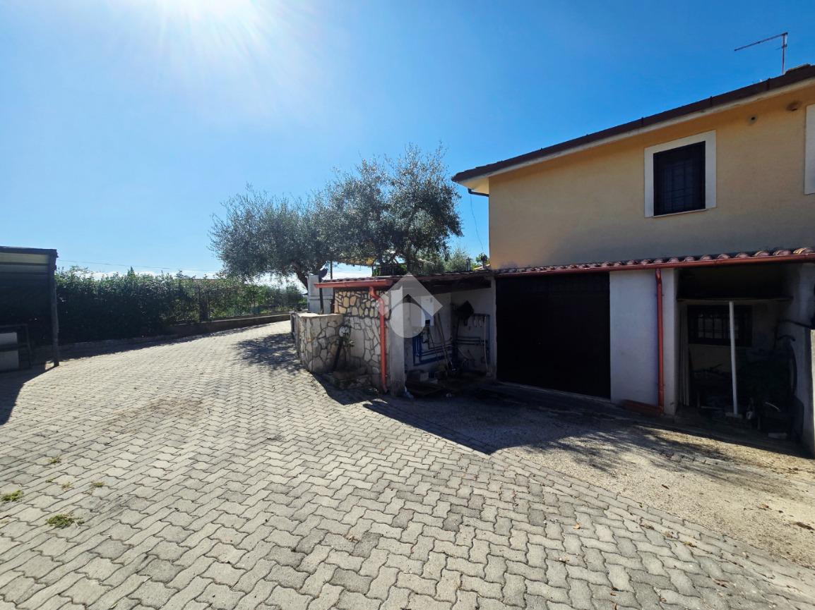 L'accesso alla villetta è caratterizzato da un cancello automatizzato che si apre su un viale di ingresso pavimentato, che consente di parcheggiare una o più auto grazie ad una tettoia e allo spazio di manovra antistante la rampa che conduce al garage.