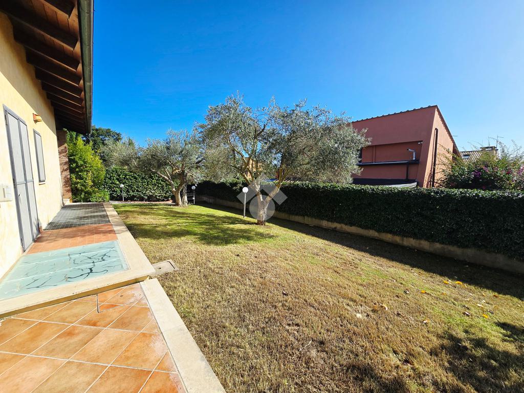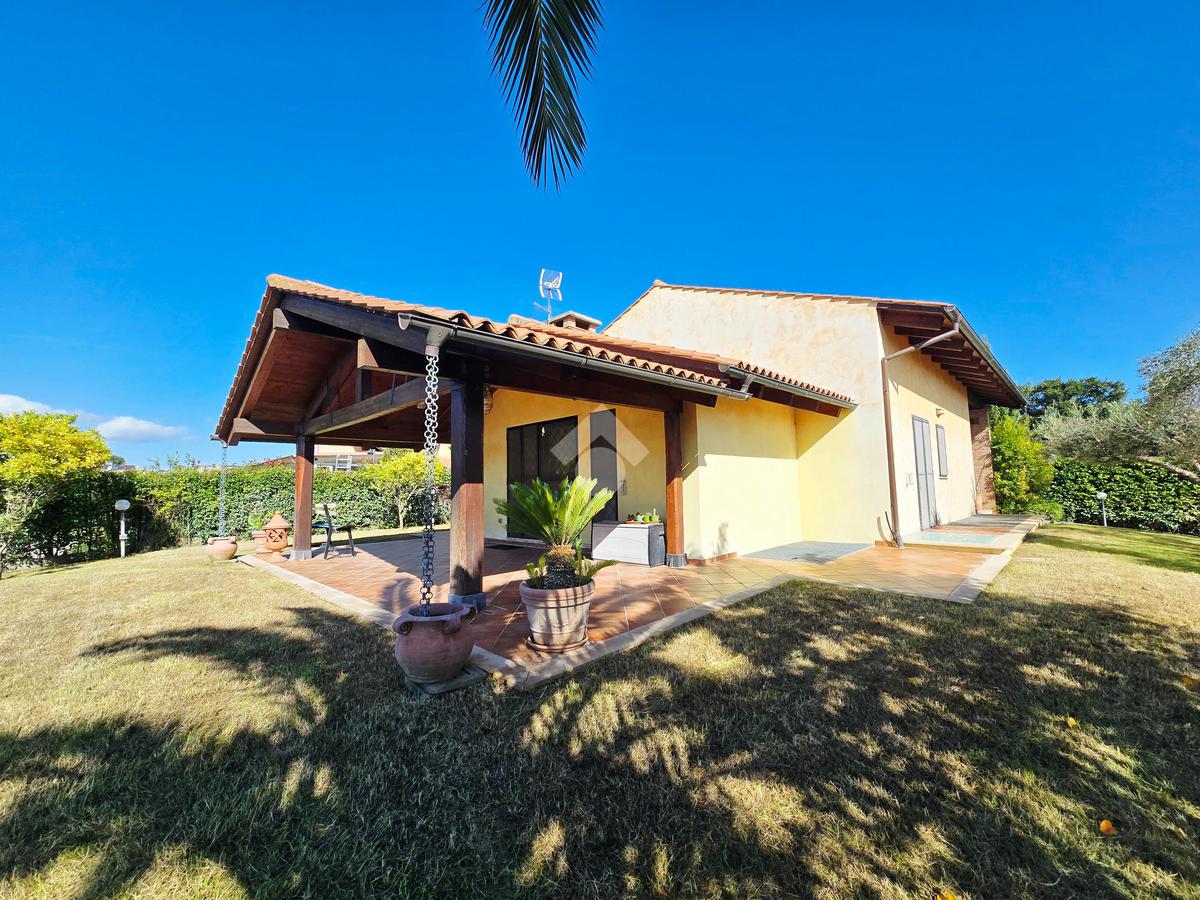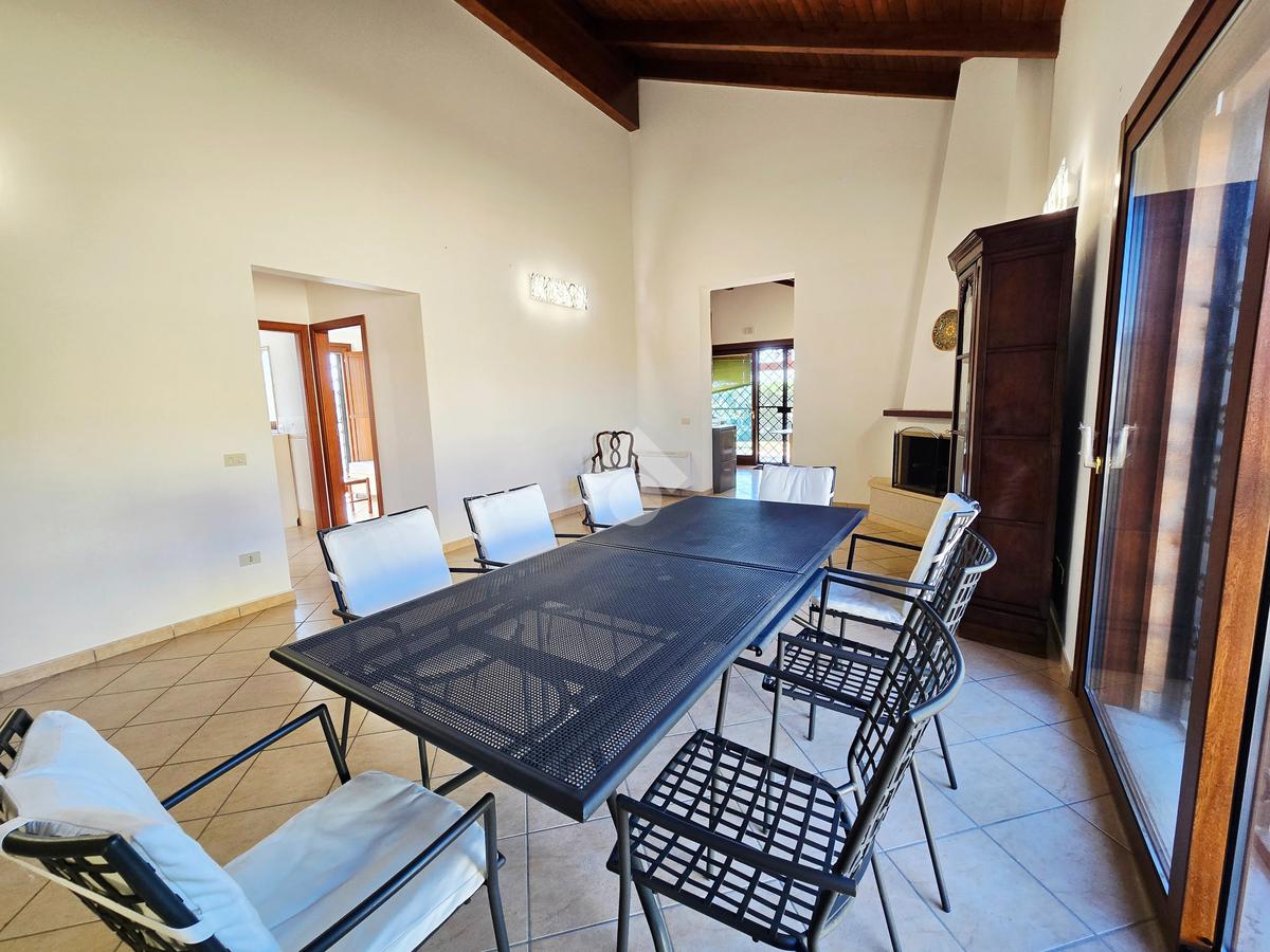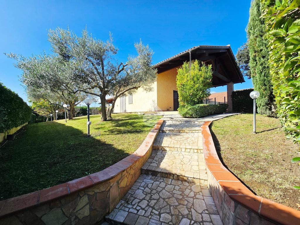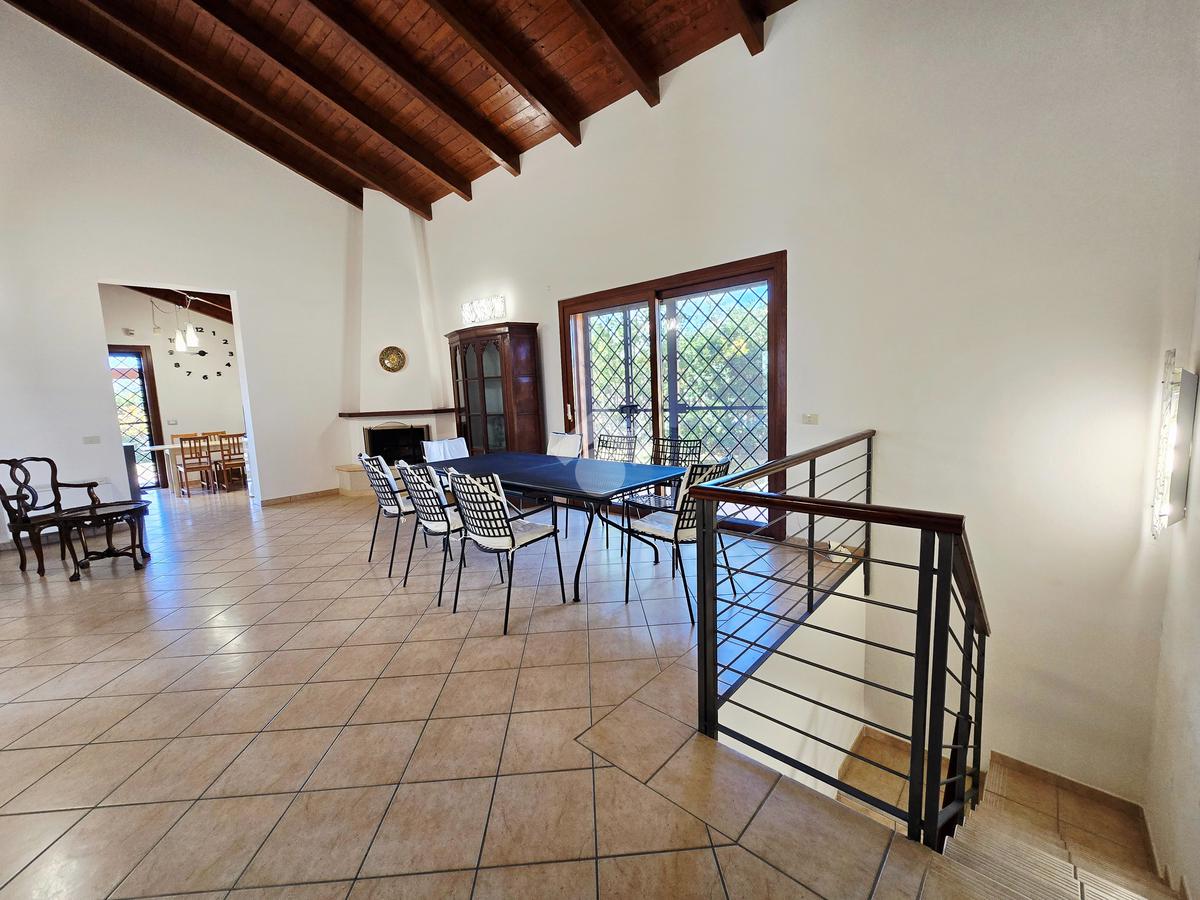 L'ingresso alla villa si apre su un giardino curato in ogni aspetto, ricco di alberatura e piante da frutto. Un ampio portico conduce verso l'entrata principale della casa, all'interno della quale verrete accolti da un salone con camino e travi in legno a vista, caratteristica presente in tutti gli ambienti del piano. La cucina abitabile attigua, dispone inoltre di accesso diretto al giardino dove è presente un secondo portico, ideale per pranzi e cene all'aperto o momenti di relax con massima privacy. Completano il piano una camera matrimoniale con bagno en-suite, una seconda camera da letto ed un bagno con doccia e finestra.