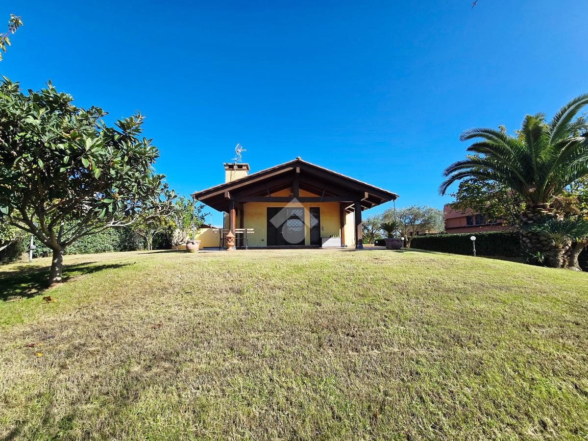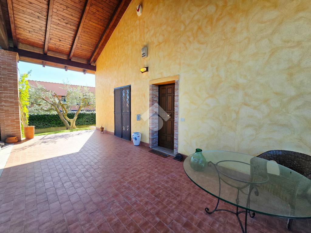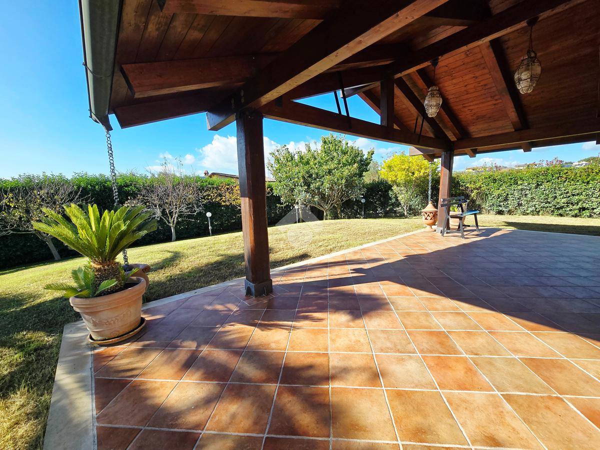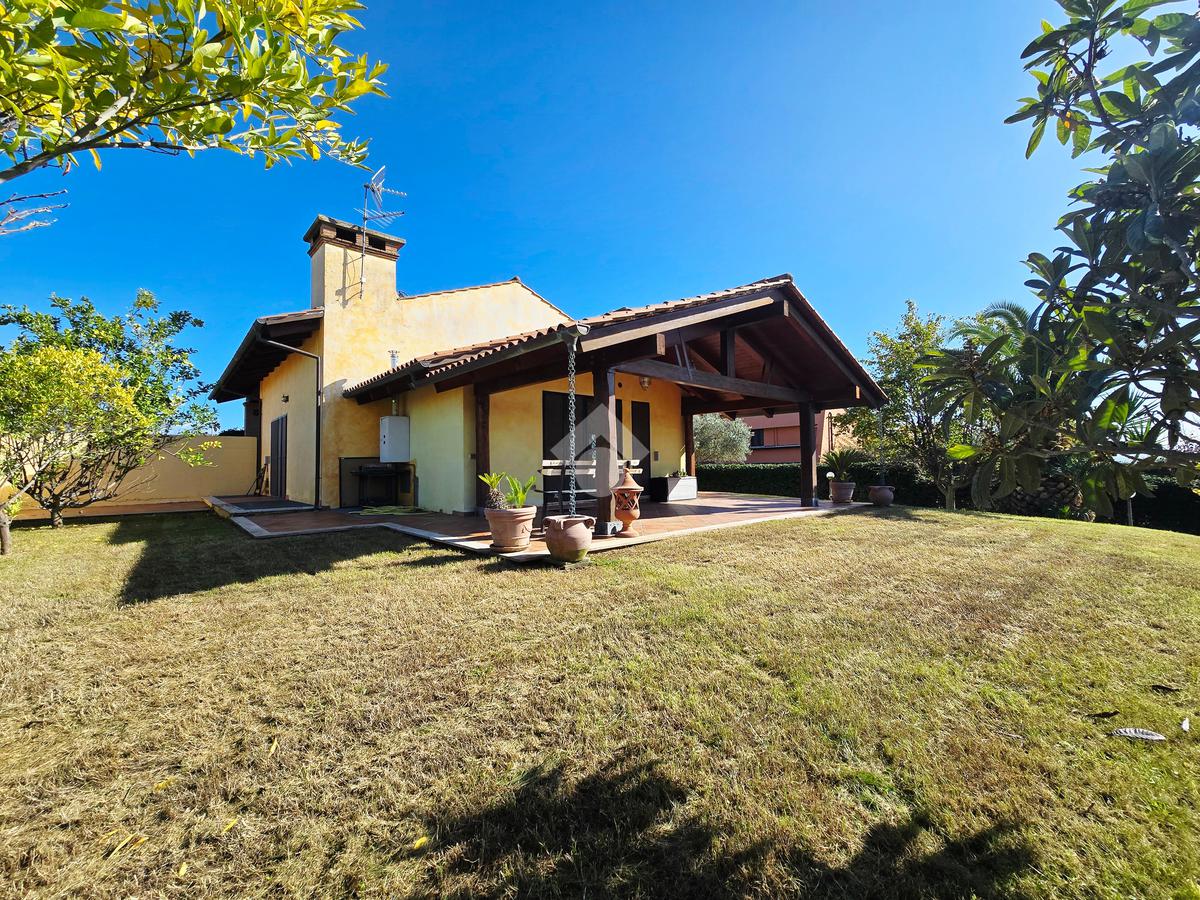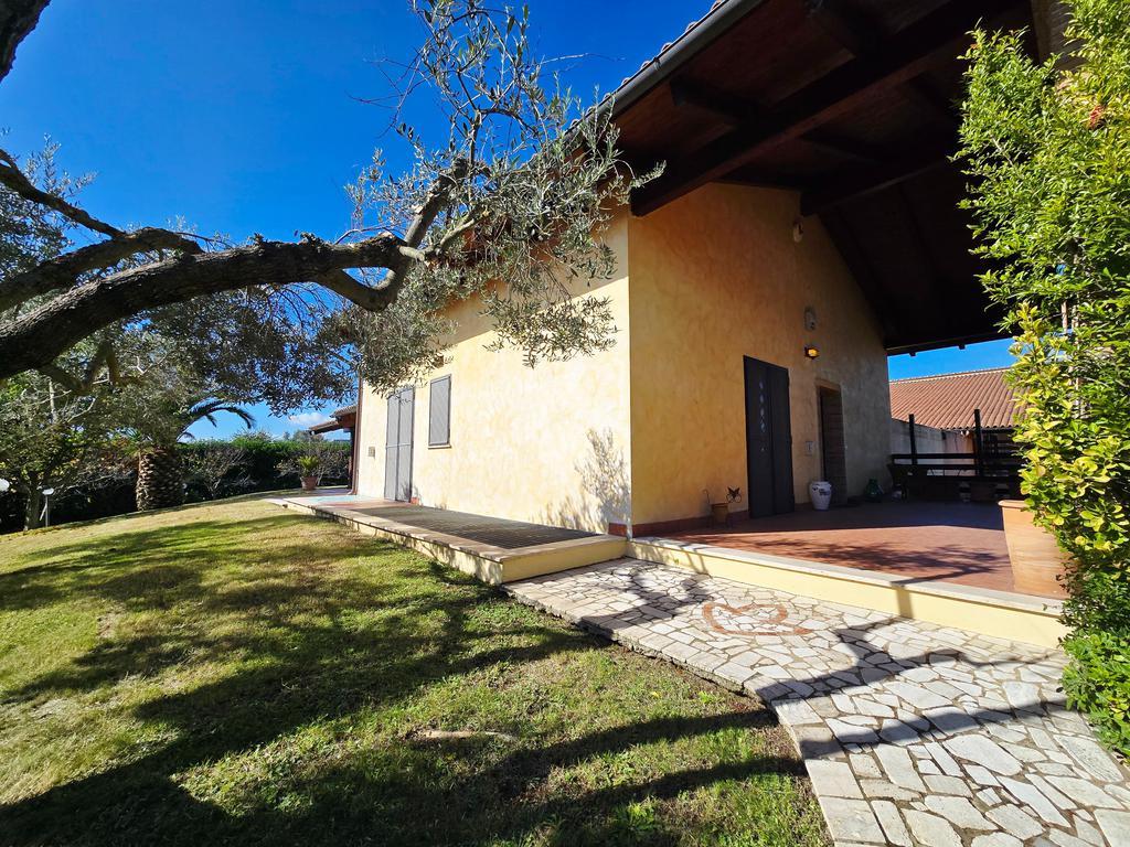 L'ingresso alla villa si apre su un giardino curato in ogni aspetto, ricco di alberatura e piante da frutto. Un ampio portico conduce verso l'entrata principale della casa, all'interno della quale verrete accolti da un salone con camino e travi in legno a vista, caratteristica presente in tutti gli ambienti del piano. La cucina abitabile attigua, dispone inoltre di accesso diretto al giardino dove è presente un secondo portico, ideale per pranzi e cene all'aperto o momenti di relax con massima privacy. Completano il piano una camera matrimoniale con bagno en-suite, una seconda camera da letto ed un bagno con doccia e finestra.